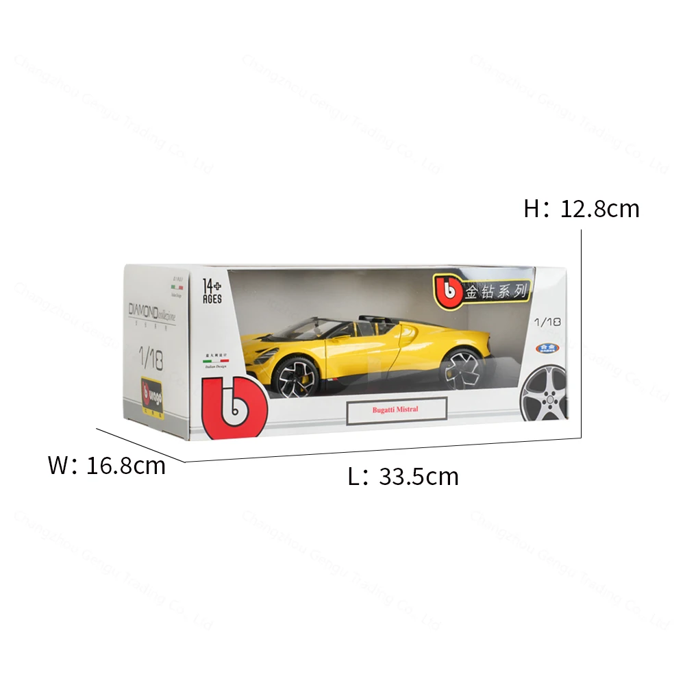 Découvrez l’élégance et la puissance à l’état pur avec cette maquette Bugatti Mistral à l’échelle 1:18, signée Bburago, marque de référence dans l’univers des modèles réduits haut de gamme.