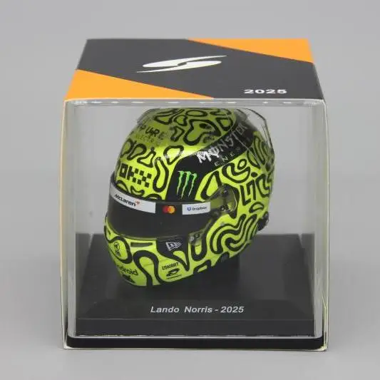 Ces casques miniatures Spark reproduisent fidèlement les designs officiels portés par les pilotes de Formule 1 lors de la saison 2025.